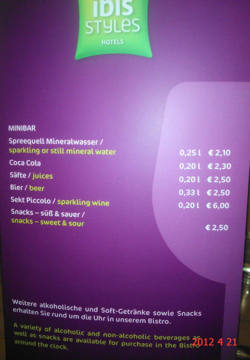 Blick auf die Karte der Minibar" ibis Styles Berlin an der Oper